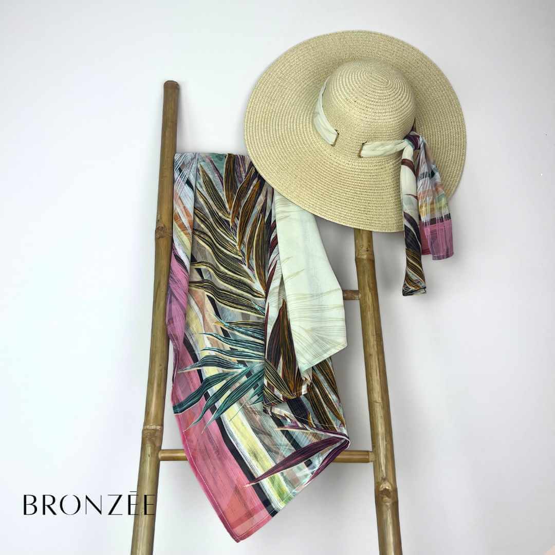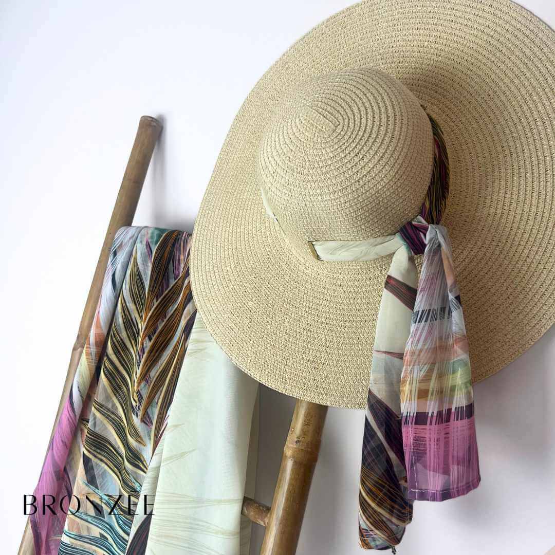 Évadez-vous sous les tropiques avec le pack Bali, qui réunit un paréo fluide aux tons pastel et un chapeau capeline beige, élégamment souligné d’un ruban dans le tissu assorti. Une tenue pensée pour conjuguer élégance, protection solaire et esprit estival.